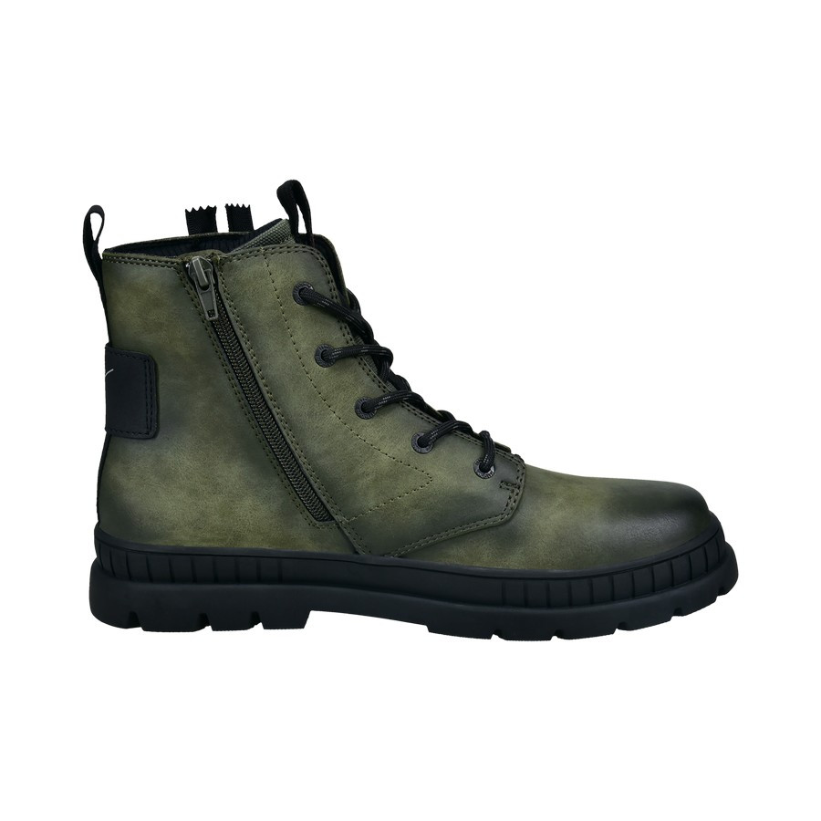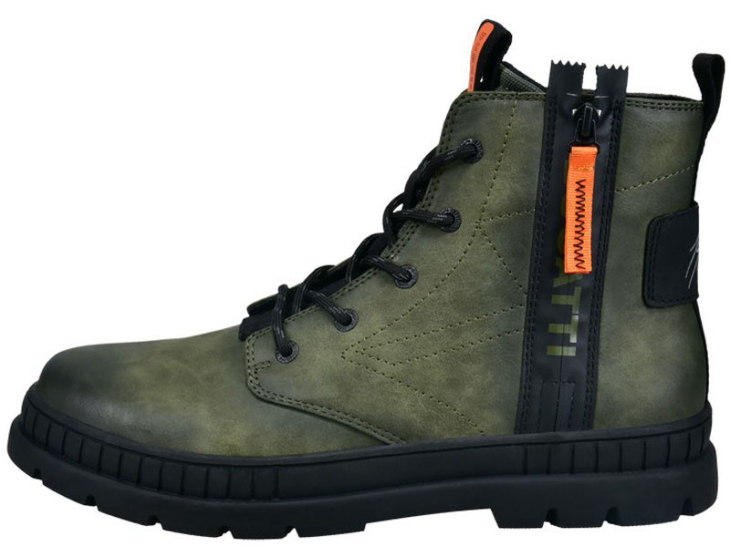 Divatos, vagány, kényelmes, fűzős férfi bokacipő, belső oldalán cipzárral.