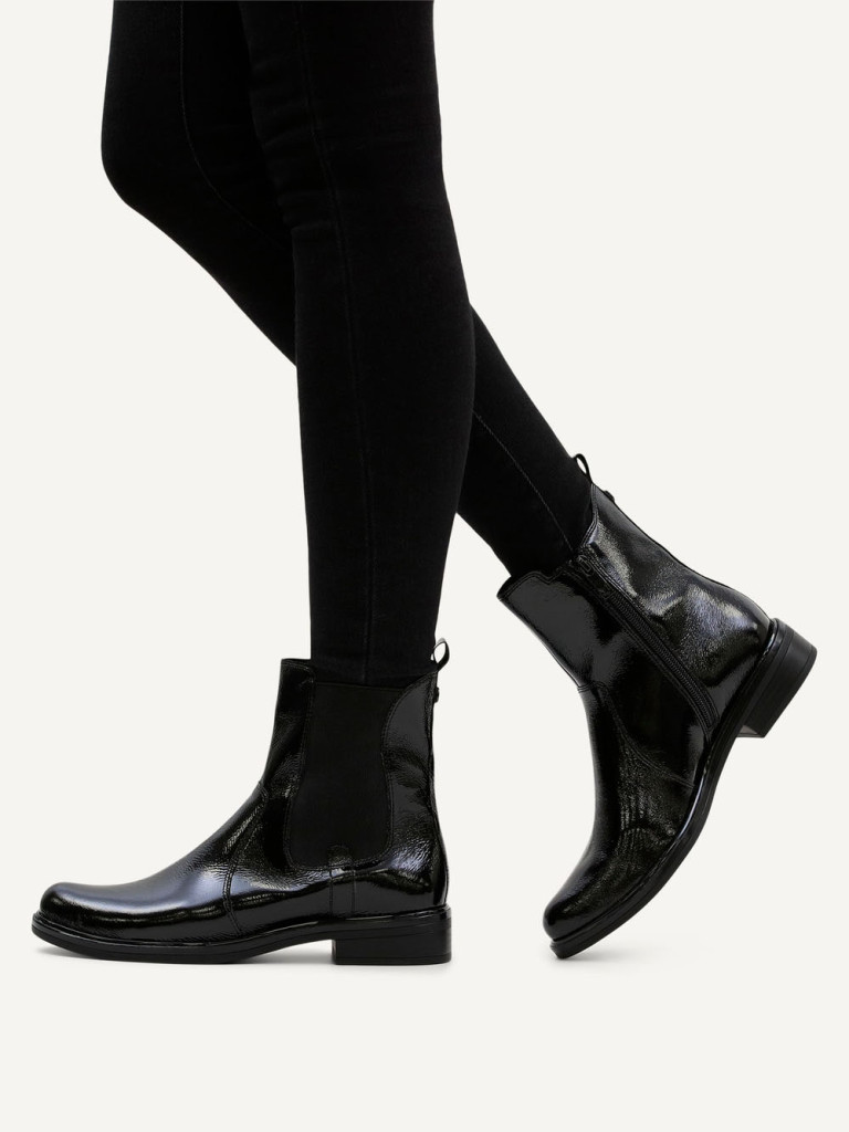 Kényelmes, divatos, chelsea stílusú, bebújós női bokacsizma, belső oldalán cipzárral.