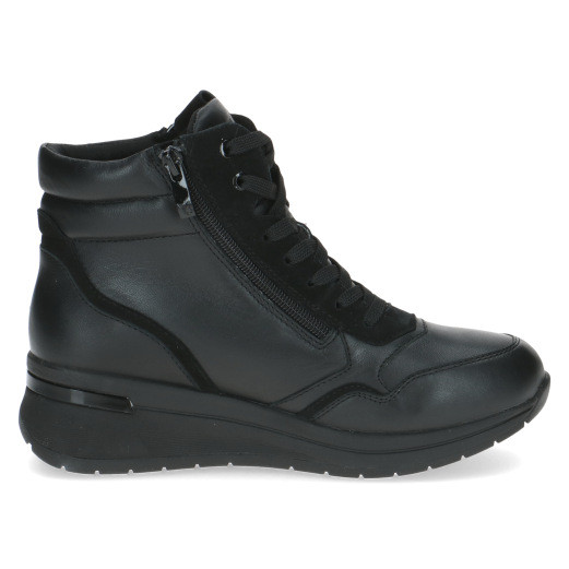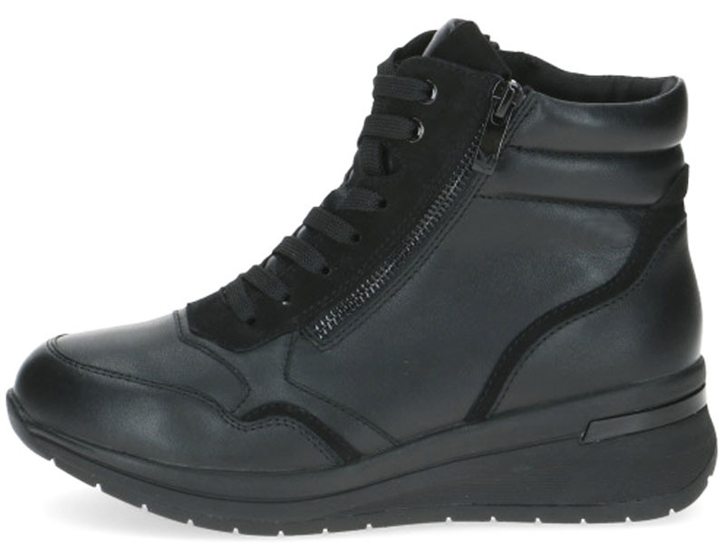 Kényelmes, divatos, fűzős női bokacsizma, mindkét oldalán cipzárral, széles bőségben.