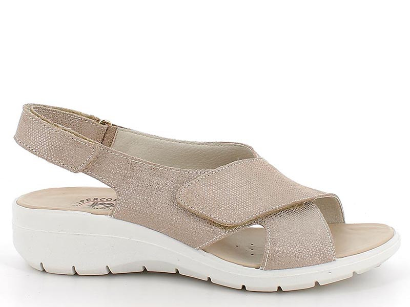 Kényelmes, divatos, tépőzáras női bőr, telitalpú szandál, széles bőségben.
