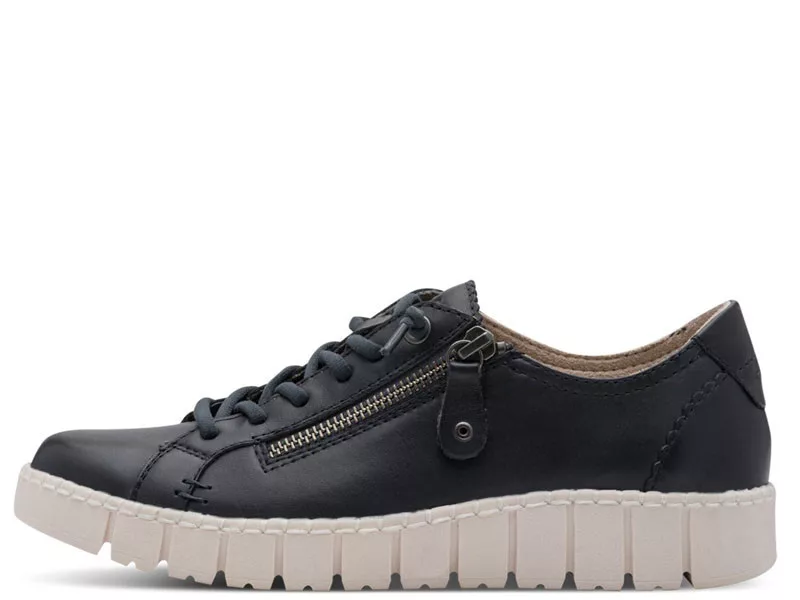 Divatos, kényelmes, bebújós női félcipő, rugalmas cipőfűzővel, külső oldalán cipzárral, széles bőségben.