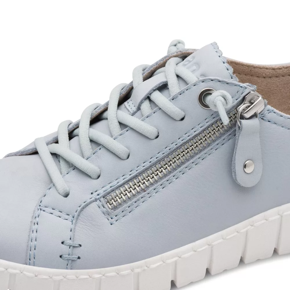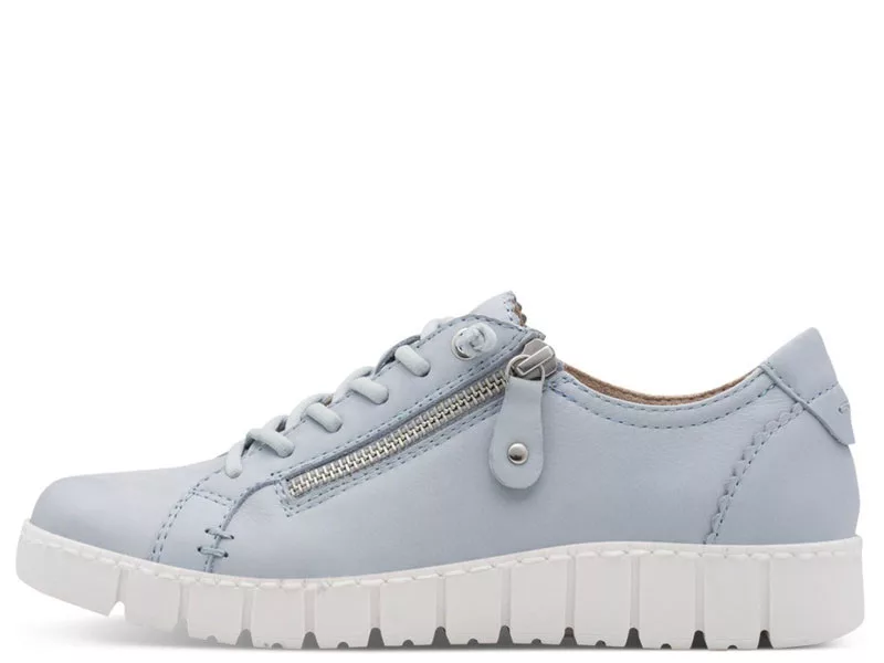 Divatos, kényelmes, bebújós női félcipő, rugalmas cipőfűzővel, külső oldalán cipzárral, széles bőségben.