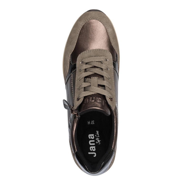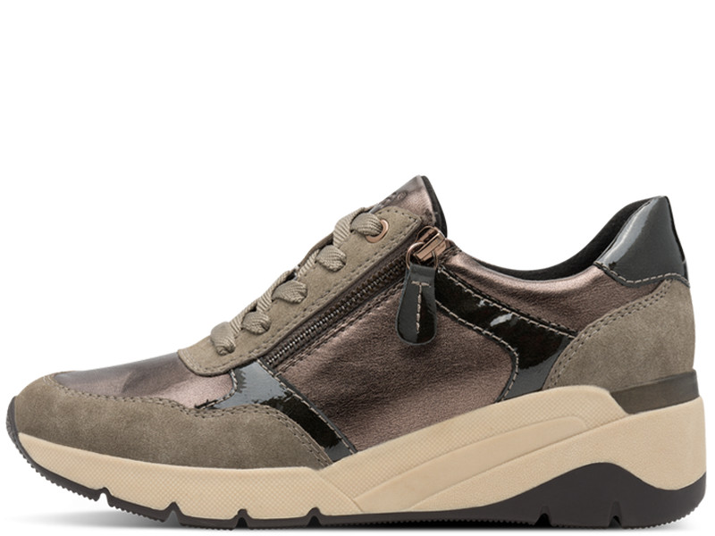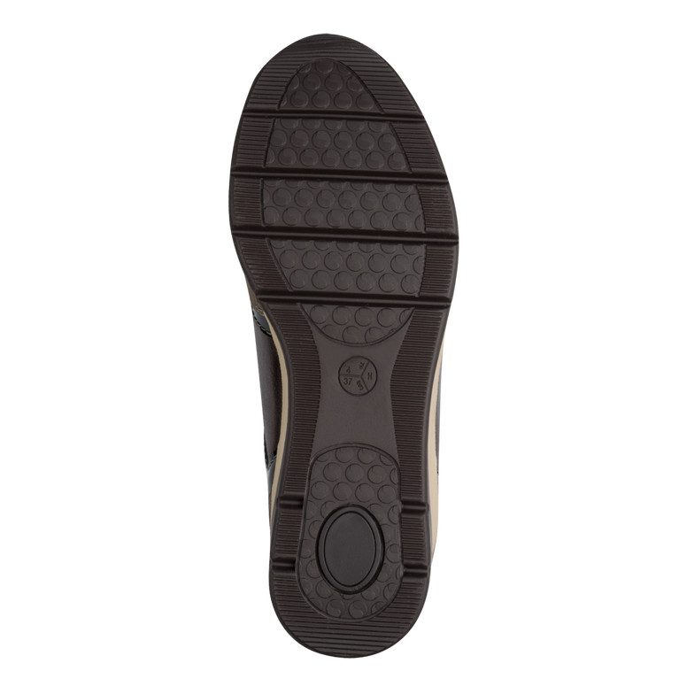 Divatos, kényelmes, fűzős női félcipő, külső oldalán cipzárral, széles bőségben, magasított talpon.