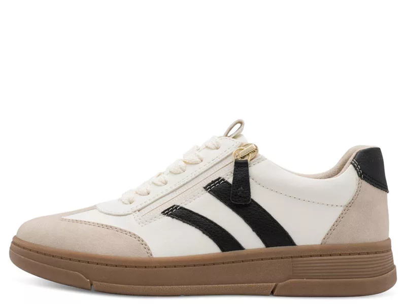 Divatos, kényelmes, fűzős női félcipő széles bőségben, külső oldalán cipzárral.