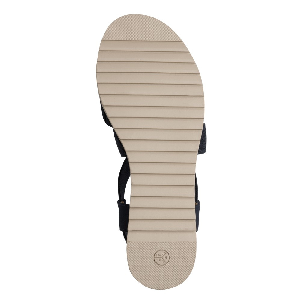 Divatos, kényelmes, bebújós, női telitalpú szandál, gumis pánttal, széles bőségben.