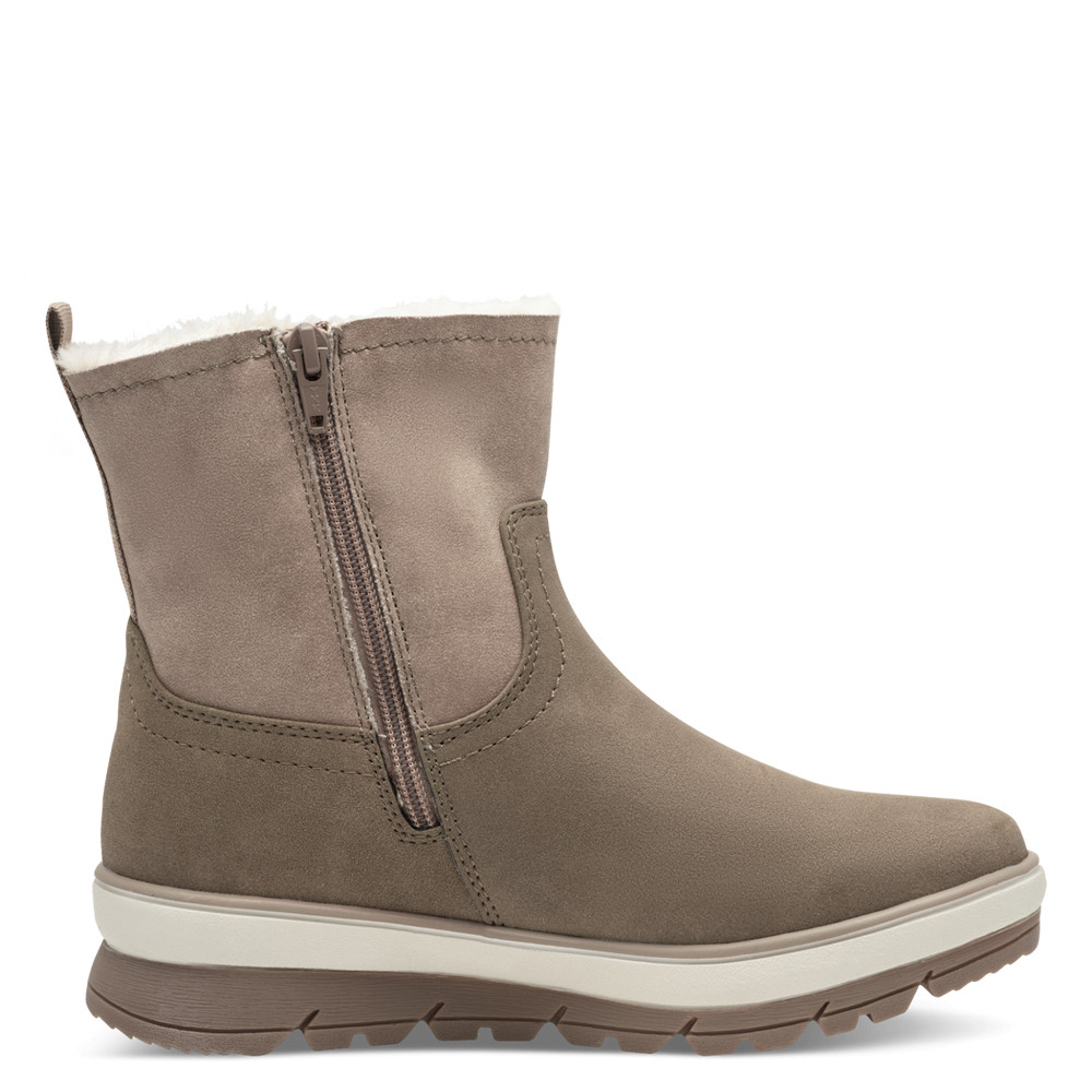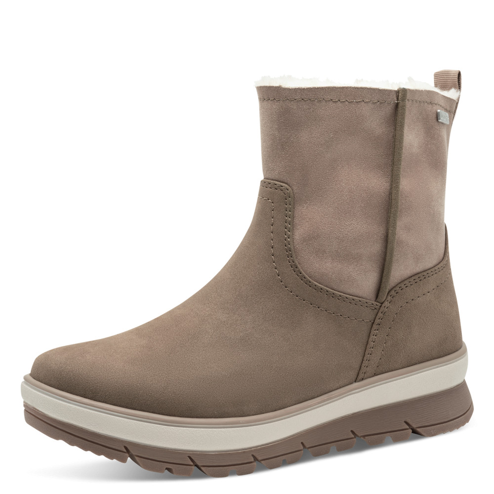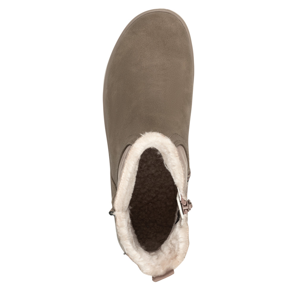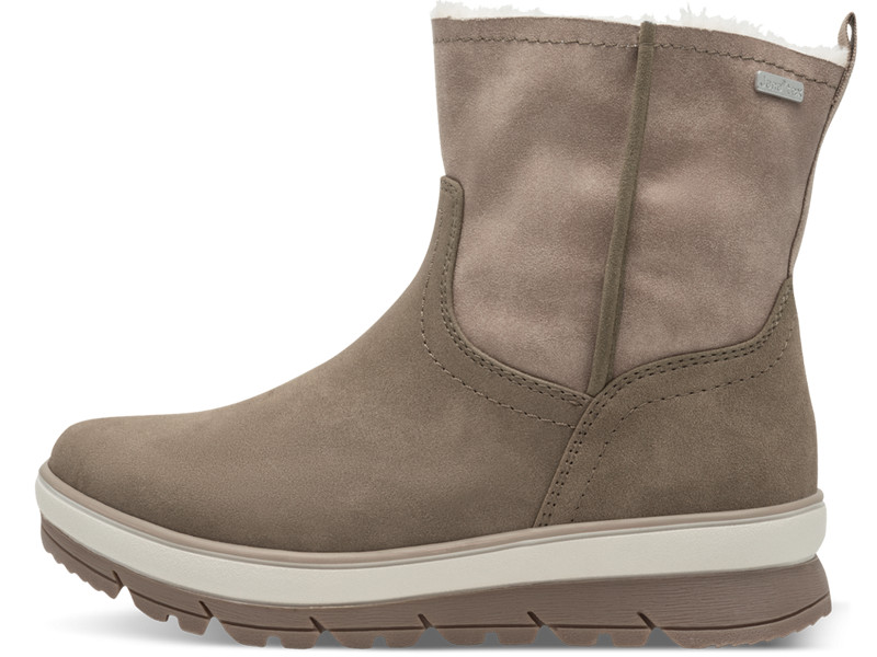 Divatos, kényelmes, vízálló, bebújós női bokacsizma, belső oldalán cipzárral, széles bőségben.