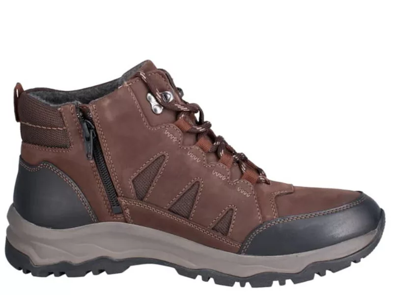 Kényelmes, divatos, fűzős, vízálló férfi bokacipő, belső oldalán cipzárral.