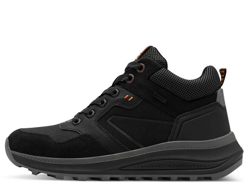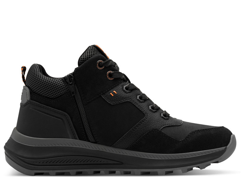 Kényelmes, divatos, vízálló, fűzős férfi bokacipő, belső oldalán cipzárral.