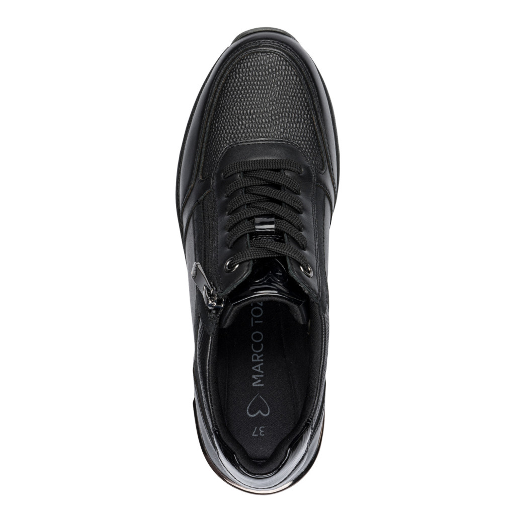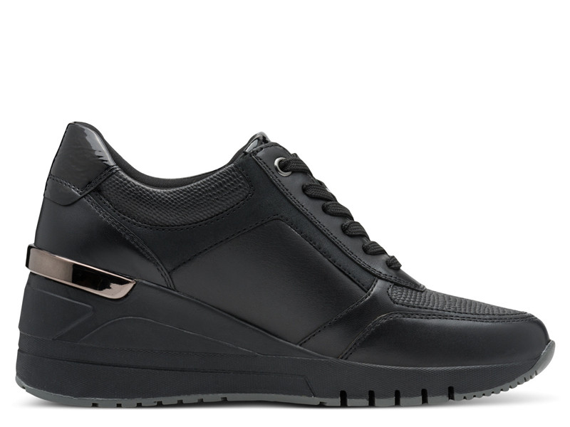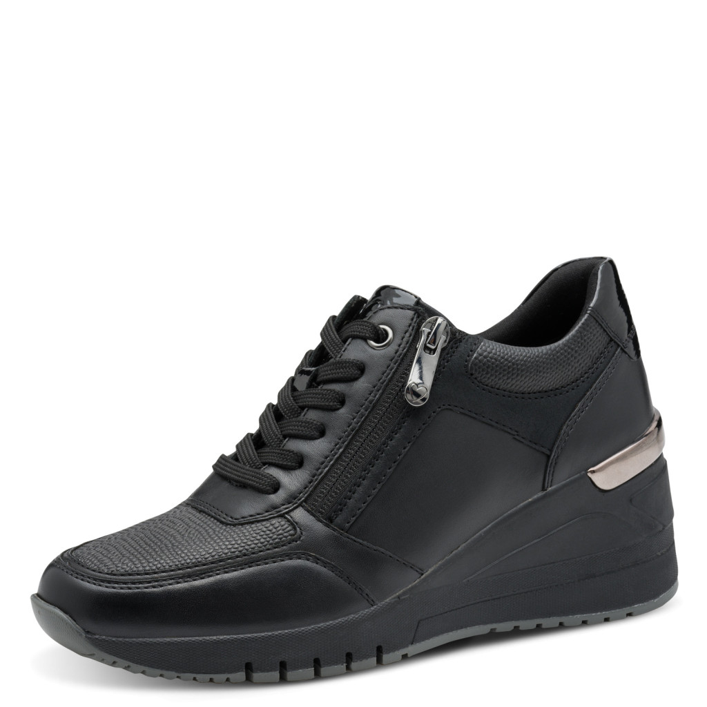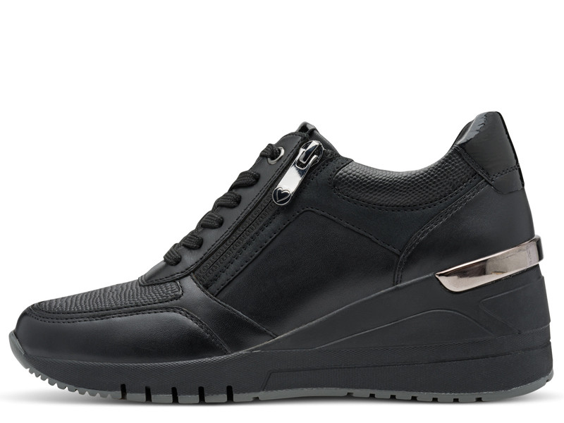 Divatos, kényelmes, fűzős női félcipő, külső oldalán cipzárral, magasított talpon.