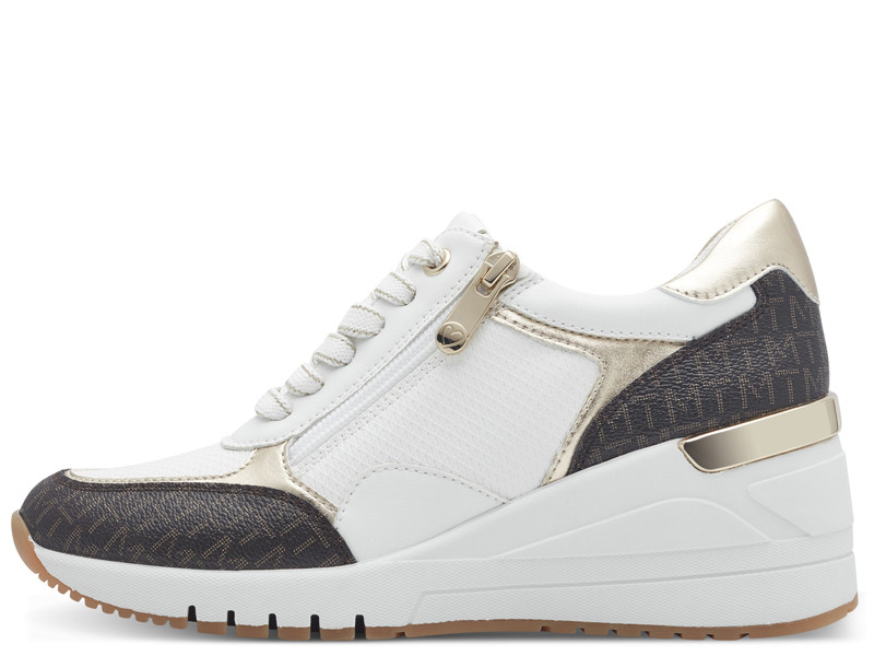 Divatos, kényelmes, fűzős női félcipő, külső oldalán cipzárral.