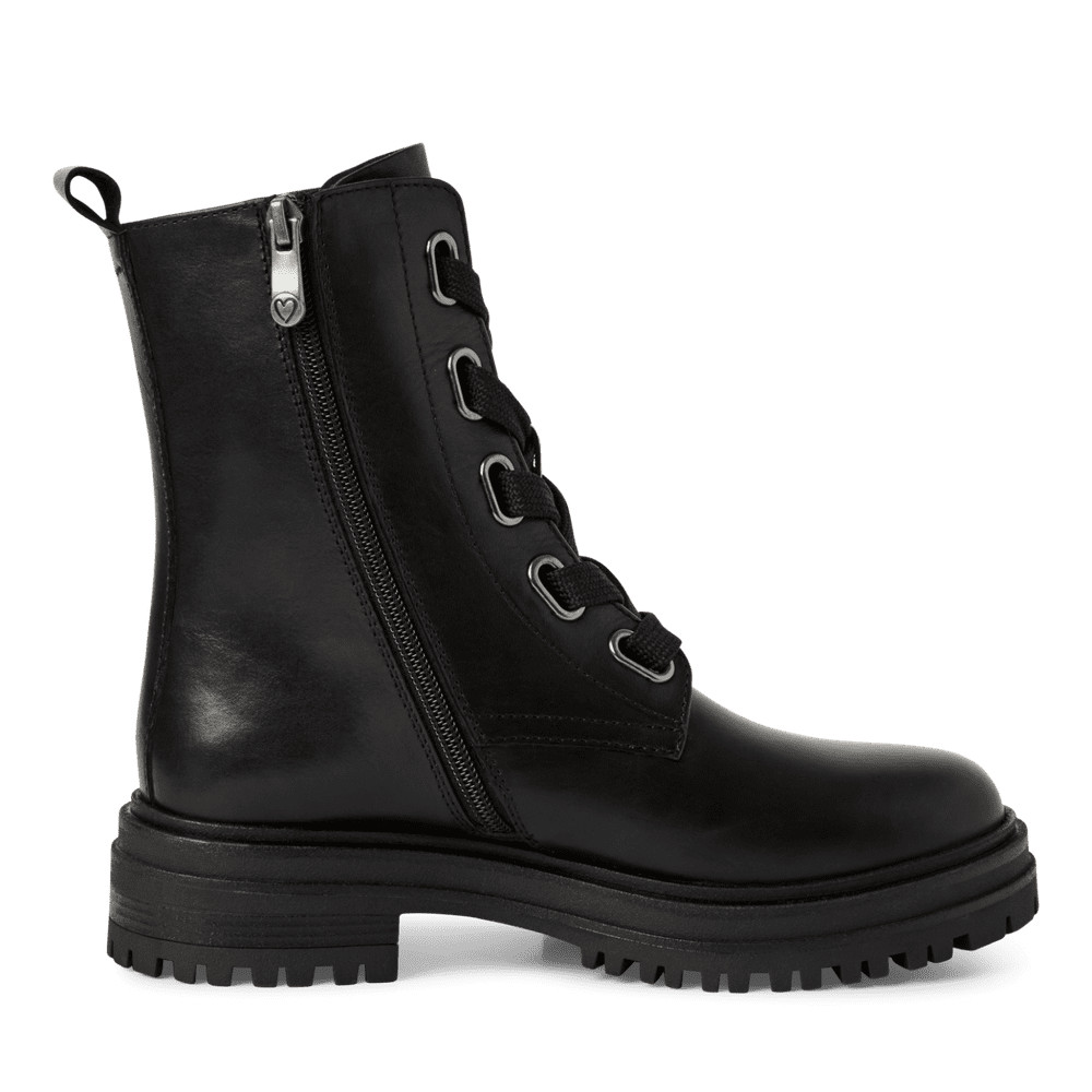 Divatos női fűzős bakancs belső oldalán cipzárral, különleges fűzőrésszel