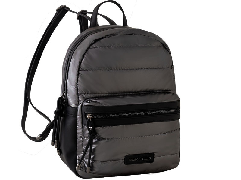 Divatos, cipzárral zárható női hátizsák. Modell: Marco Tozzi 61021 43906 Szín: pewter combi / ónszínű kombinált Felsőrész: szintetikus soft nappa Bélés: textil