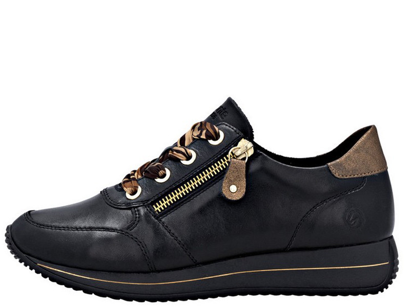Divatos, kényelmes, fűzős női félcipő, külső oldalán cipzárral.