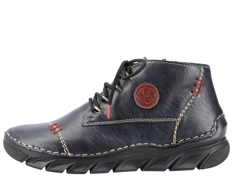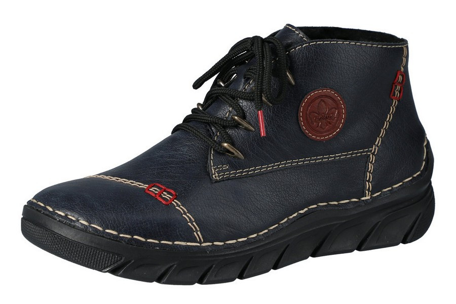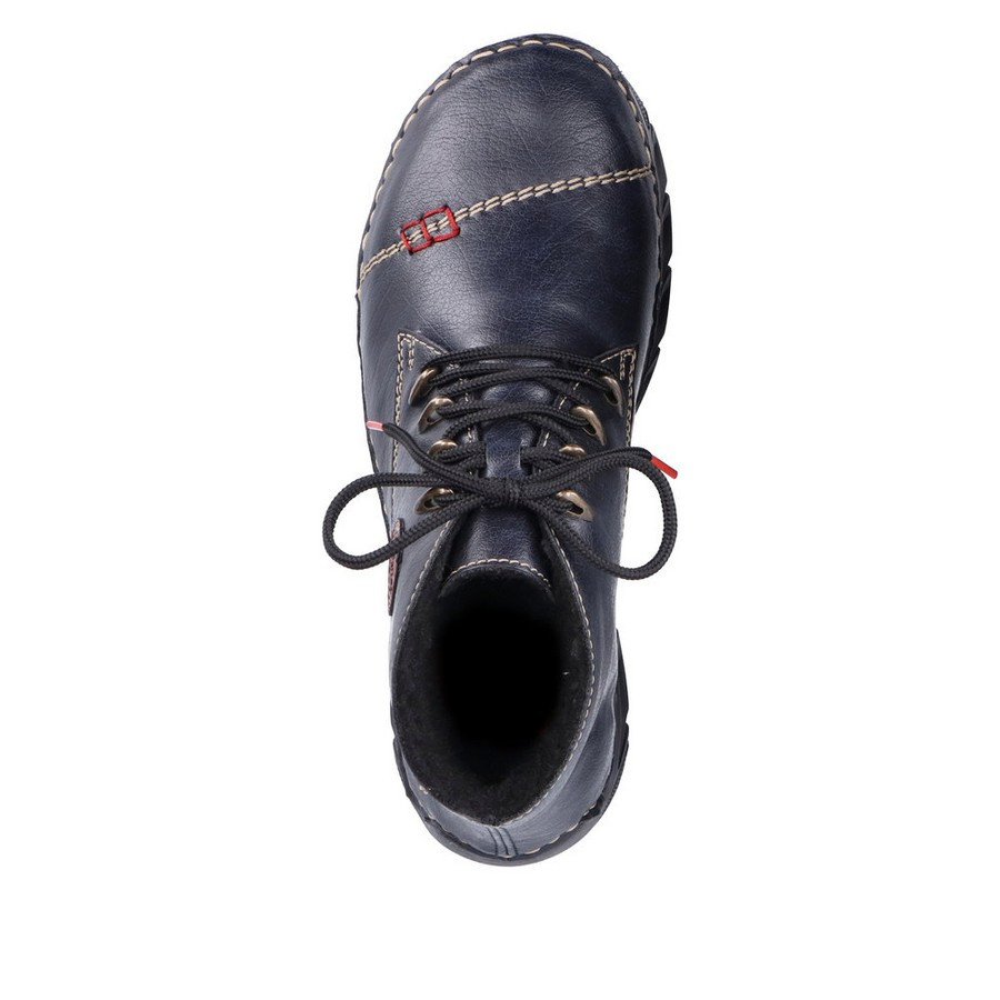 Kényelmes, divatos, fűzős női bokacipő. Modell: Rieker 55002 14 Szín: blue / kék Felsőrész: szintetikus soft nappa Bélés: szőrme Kaptafaszélesség: G - kényelmi normál bőség Sarokmagasság: 3 cm