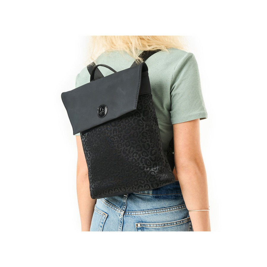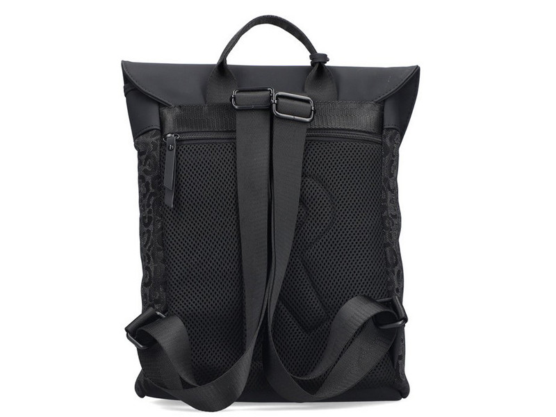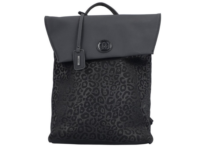 Divatos, cipzárral és patenttal zárható kétterű női hátizsák, állítható vállpánttal. Modell: Rieker H1386 01 Szín: black / fekete Felsőrész: szintetikus soft nappa Bélés: textil