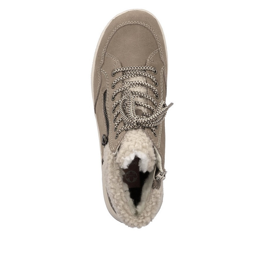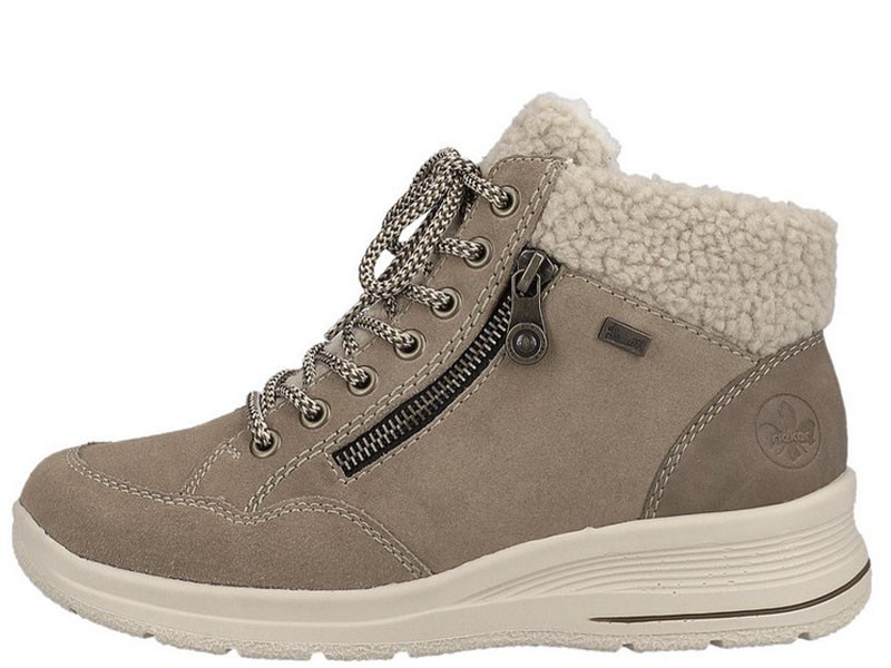 Kényelmes, divatos, fűzős, vízálló, női bokacipő, külső és belső oldalán cipzárral.