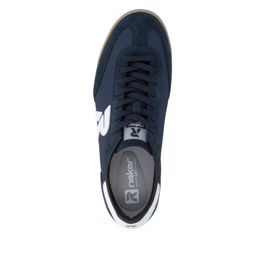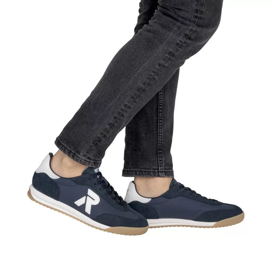 Kényelmes, sportos, fűzős férfi sneaker. Modell: Rieker Sport U4000 14 Szín: blue / kék Felsőrész: természetes velúrbőr - textil Bélés: textil - szintetikus soft nappa