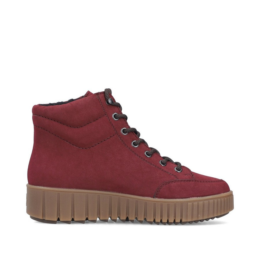 Kényelmes, divatos, fűzős, vízálló női bokacipő, külső oldalán cipzárral.