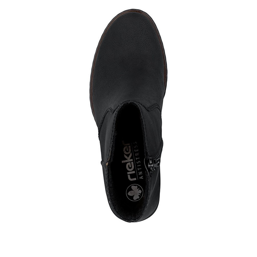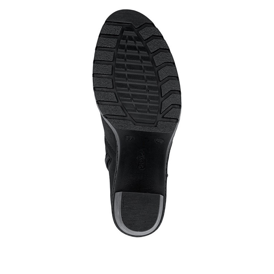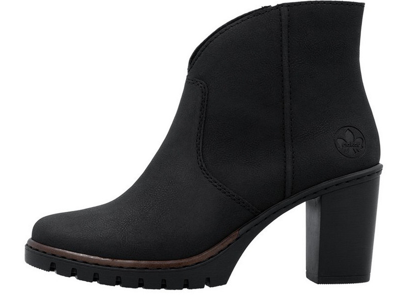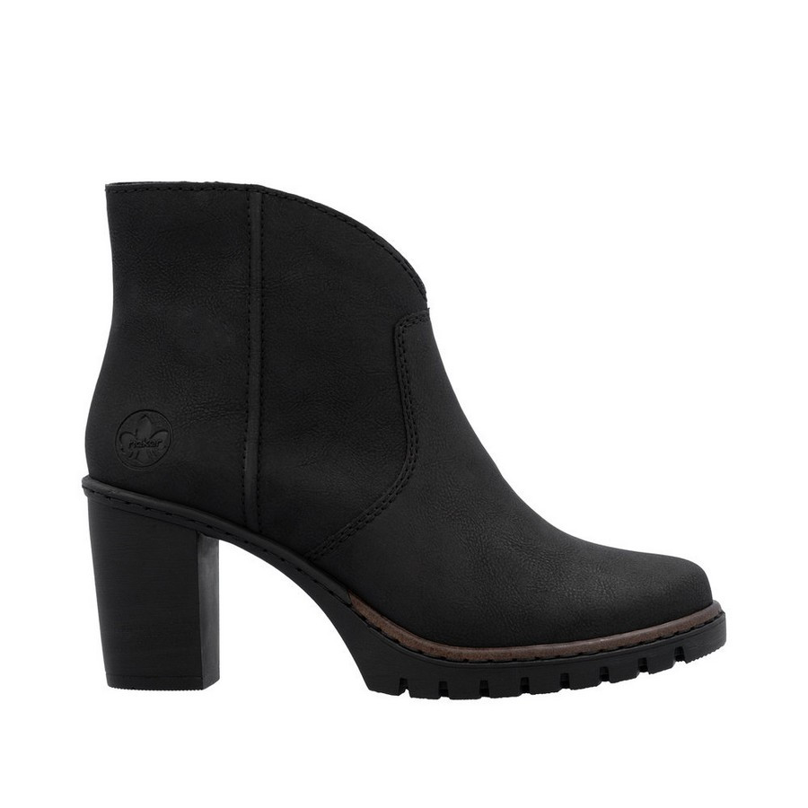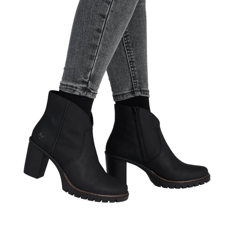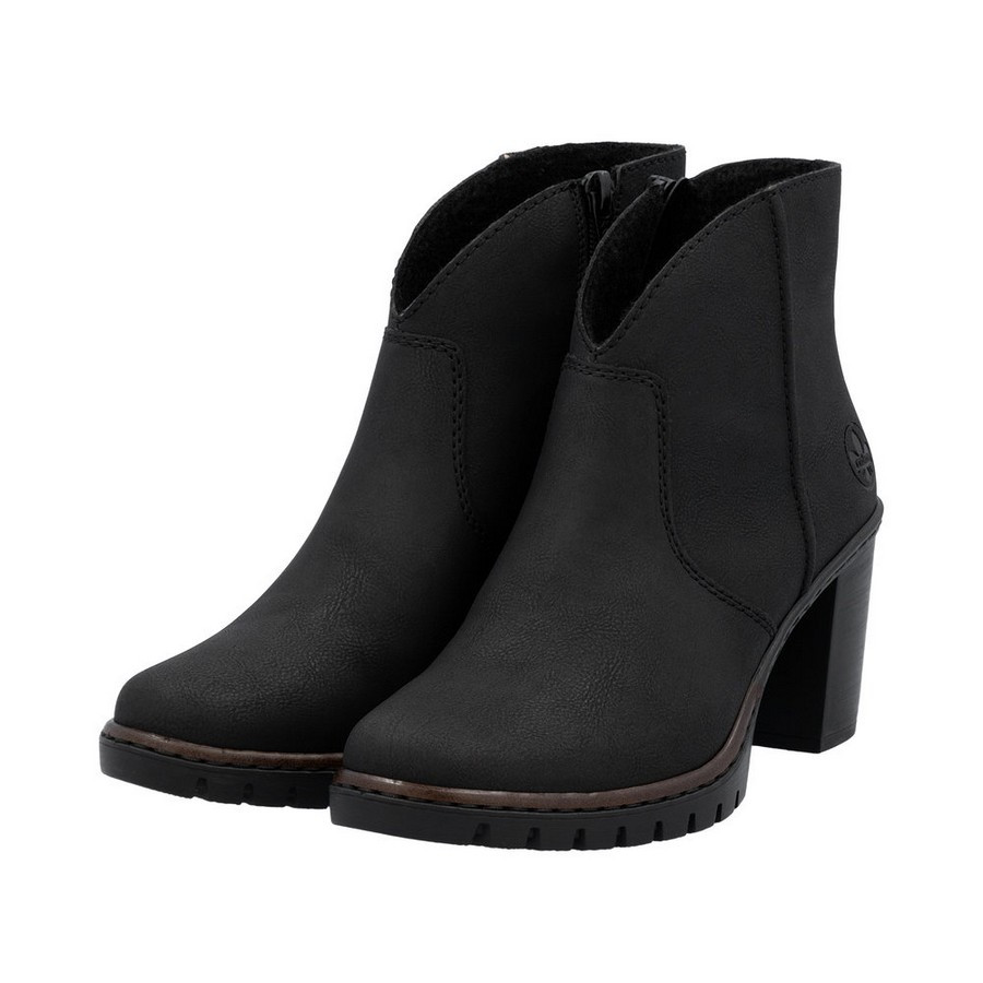 Extravagáns, divatos, bebújós női bokacsizma. Modell: Rieker Y2553 00 Szín: black / fekete Felsőrész: szintetikus soft nappa Bélés: filc Kaptafaszélesség: G - kényelmi normál bőség Sarokmagasság: 7 cm