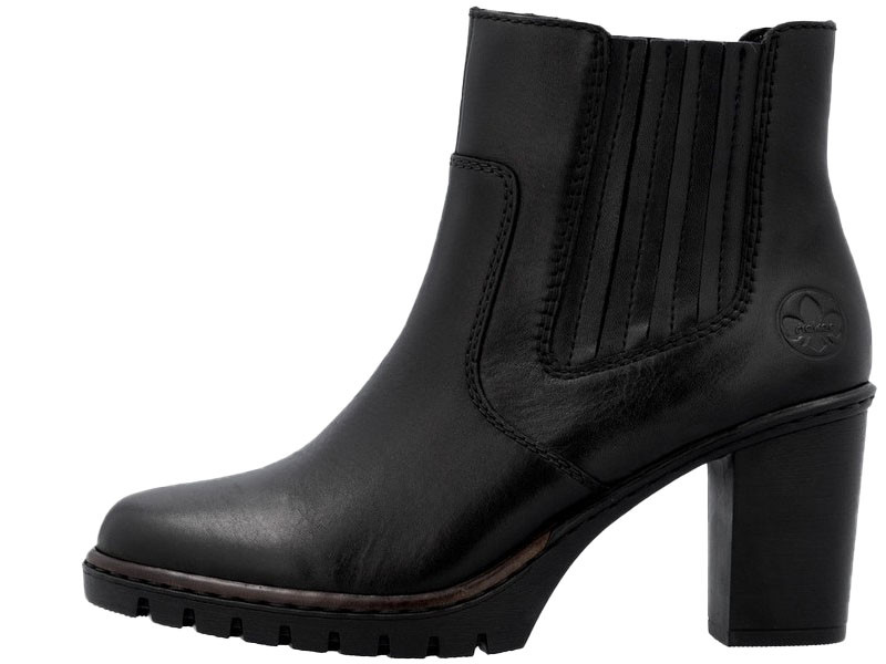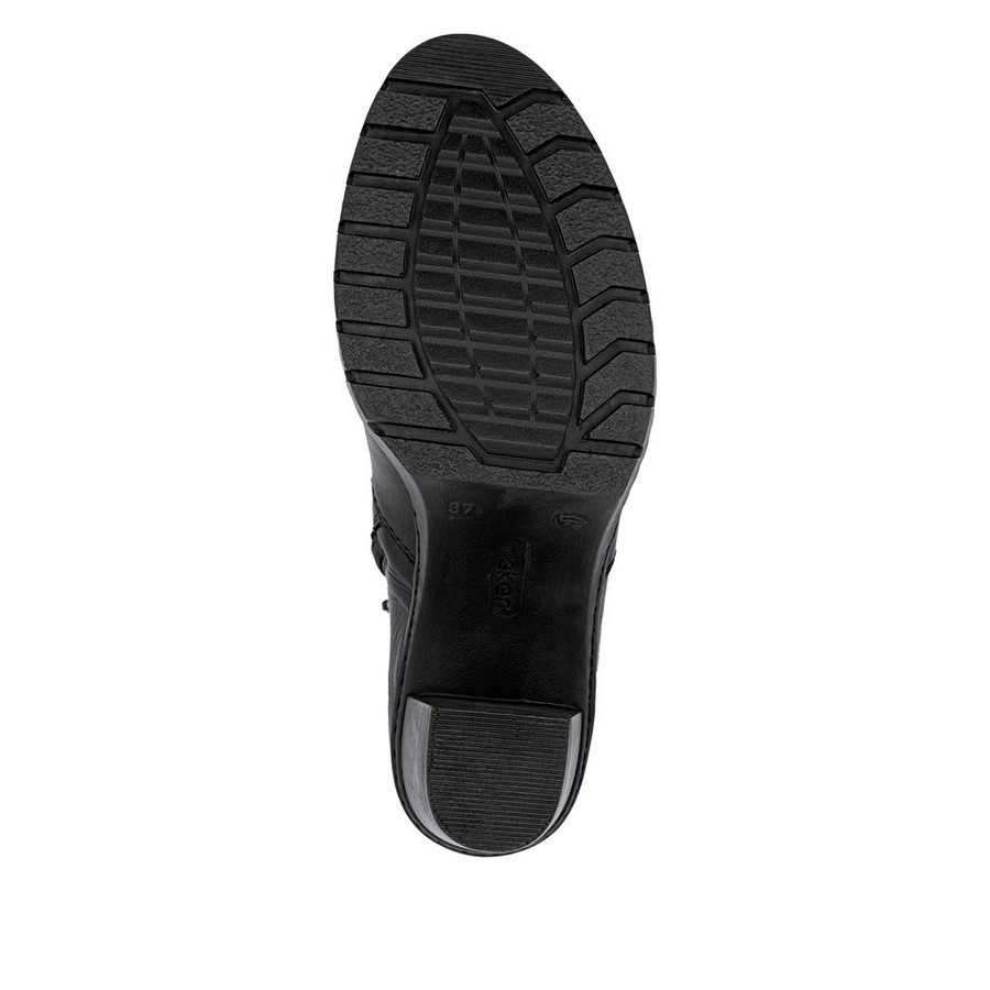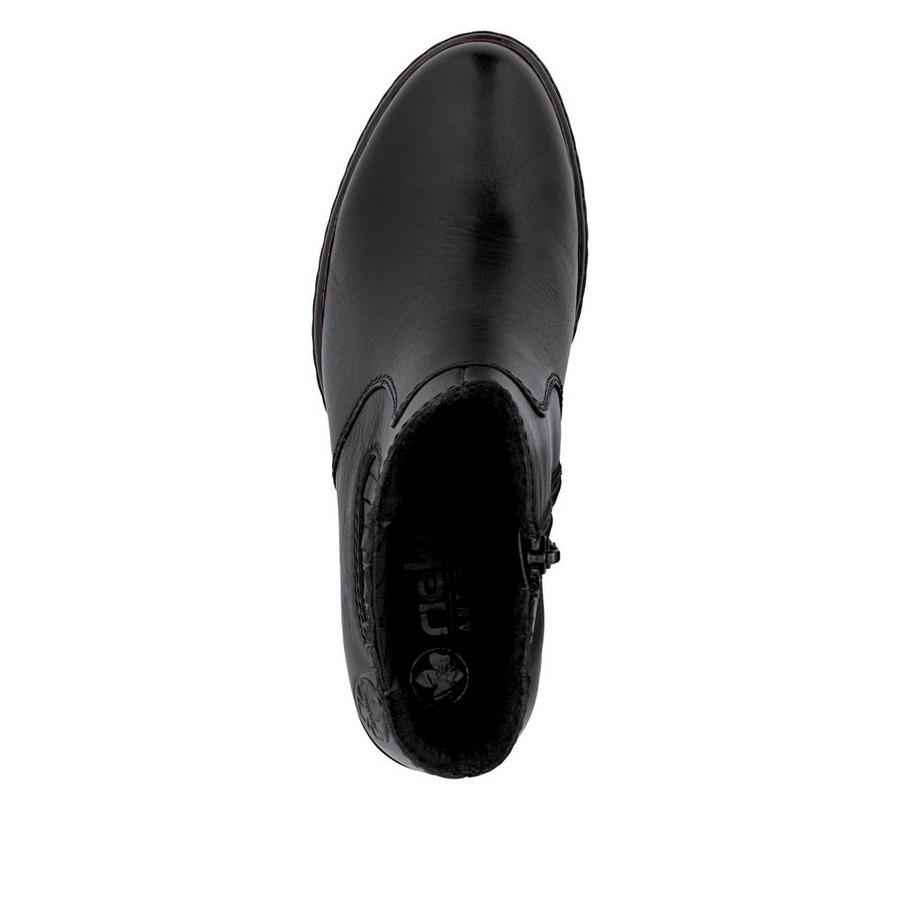 Kényelmes, divatos női bokacsizma, belső oldalán cipzárral. Modell: Rieker Y2577 00 Szín: black / fekete Felsőrész: természetes nappa bőr Bélés: plüss Kaptafaszélesség: G - kényelmi normál bőség Sarokmagasság: 7 cm