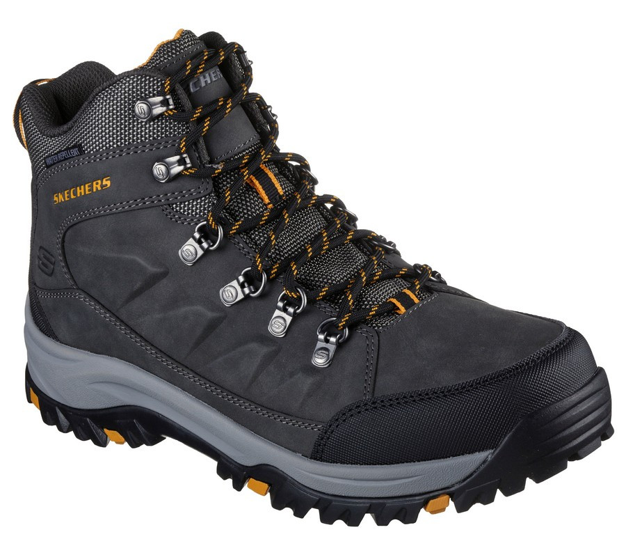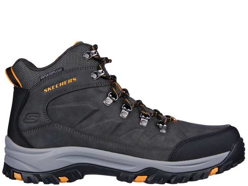 Fűzős túracipő vízlepergető, szintetikus és hálós felsőrésszel, és párnázott Skechers Air-Cooled Memory Foam talpbetéttel készült.