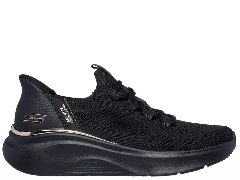 Ez a különleges Heel Pillow™ sarokpárnával rendelkező vegán belebújós cipő speciális, kötött felsőrésszel és állítható fűzőkkel, valamint formázott Skechers Memory Foam™ talpbetéttel készült.