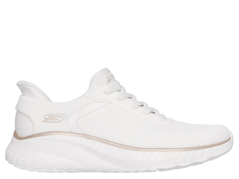 Ez a különleges Heel Pillow™ sarokpárnával rendelkező divatos cipő speciális, kötött felsőrésszel és rugalmas fűzőkkel, valamint párnázott Skechers Memory Foam™ talpbetéttel készült, A Skechers® BOBS® terméke elkötelezett a rászoruló háziállatok életének megmentése iránt.