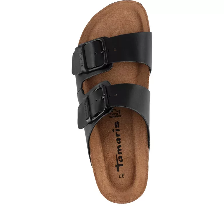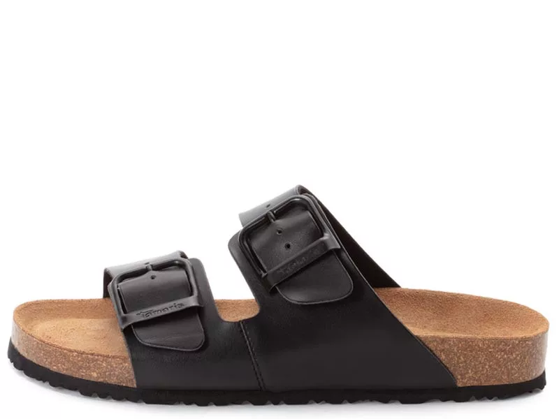 Divatos, kényelmes, csatos női komfort papucs. Modell: Tamaris 27503 42001 Szín: black / fekete Felsőrész: szintetikus soft nappa Bélés: textil - természetes bőr Kaptafaszélesség: G - kényelmi normál bőség Sarokmagasság: 3 cm