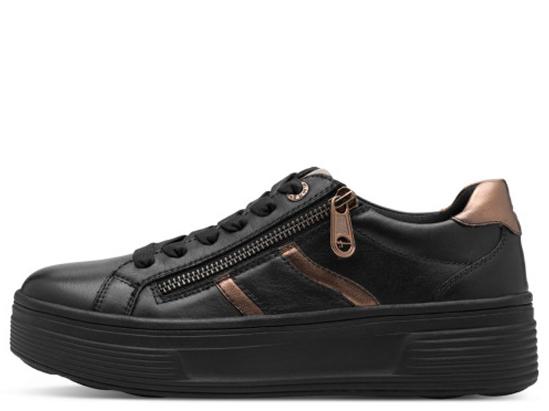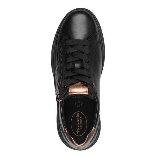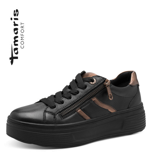Divatos, kényelmes, fűzős női félcipő, külső oldalán cipzárral, széles bőségben.