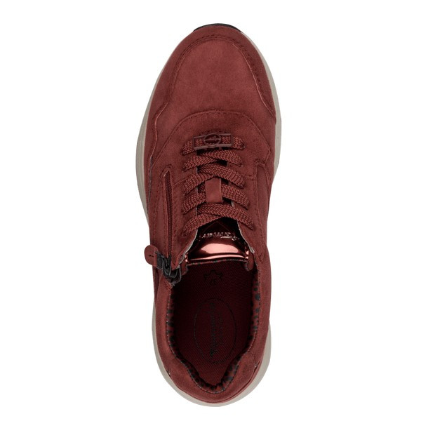 Sportos, kényelmes, fűzős női félcipő, külső oldalán cipzárral, széles bőségben.