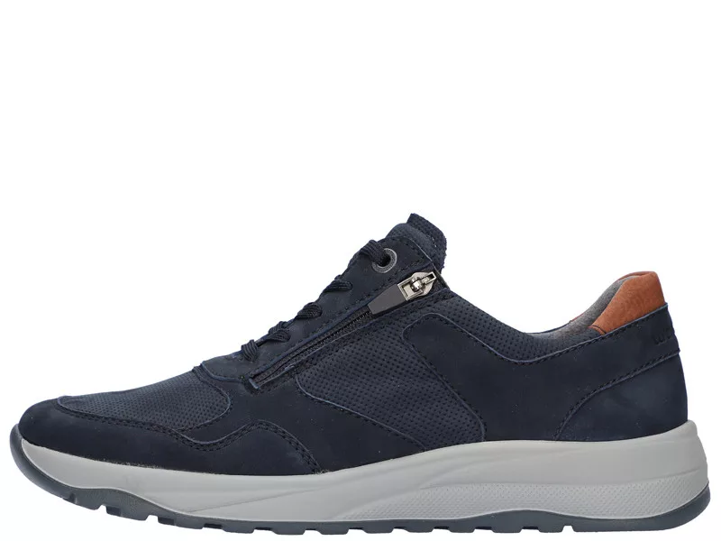 Kényelmes, divatos, fűzős férfi félcipő, széles bőségben, külső oldalán cipzárral.